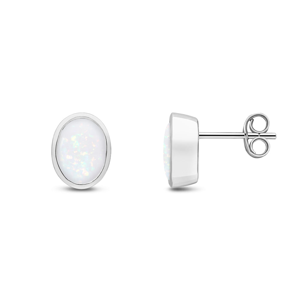 9CT White Gold Oval Opal Rubover Stud Earrings 8x6mm