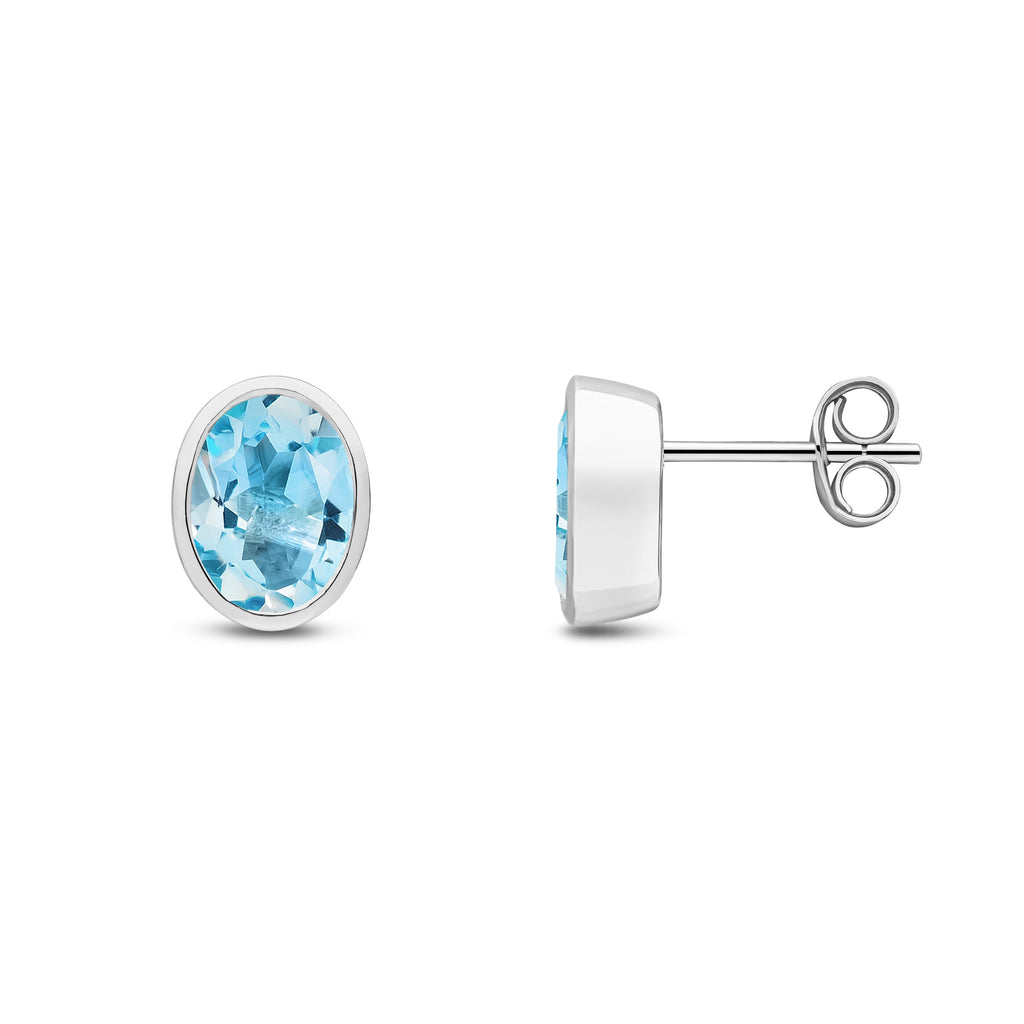 9CT White Gold Oval Swiss Blue Topaz Rubover Stud Earrings 8x6mm