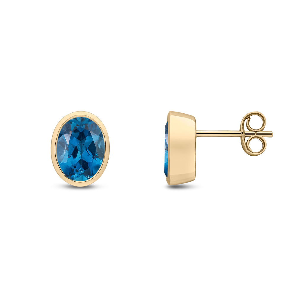 9CT Yellow Gold Oval London Blue Topaz Rubover Stud Earrings 8x6mm