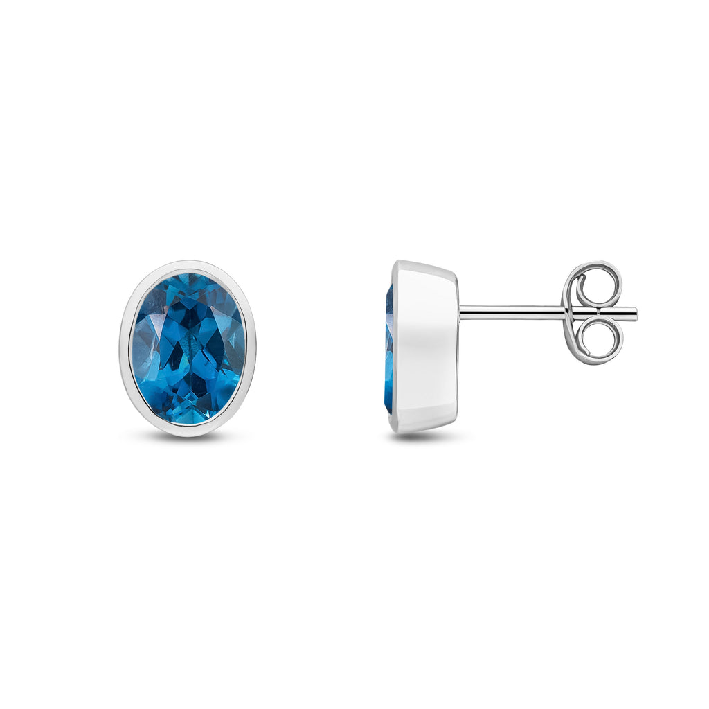 9CT White Gold Oval London Blue Topaz Rubover Stud Earrings 8x6mm
