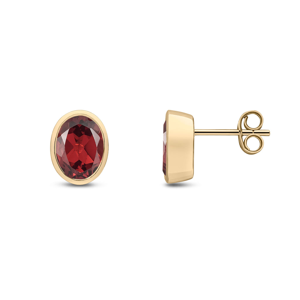 9CT Yellow Gold Oval Garnet Rubover Stud Earrings 8x6mm