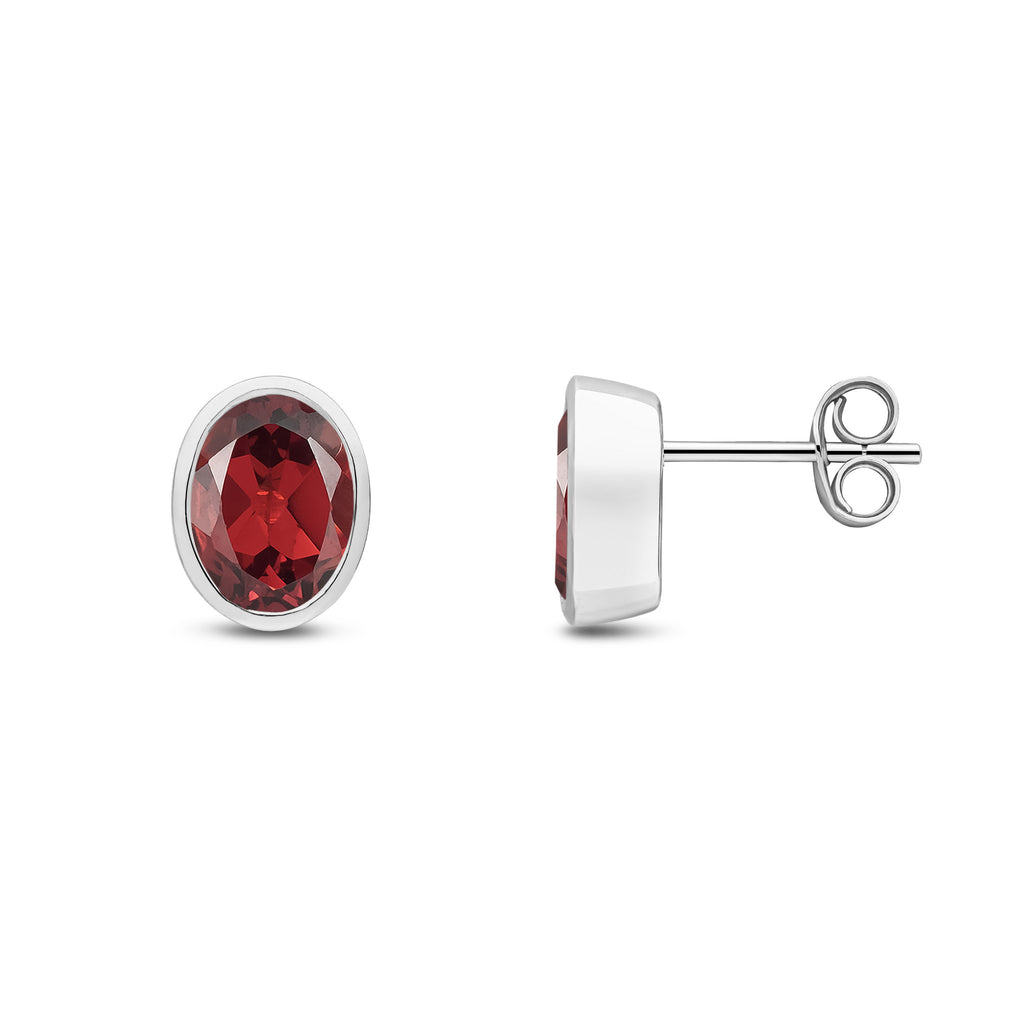 9CT White Gold Oval Garnet Rubover Stud Earrings 8x6mm
