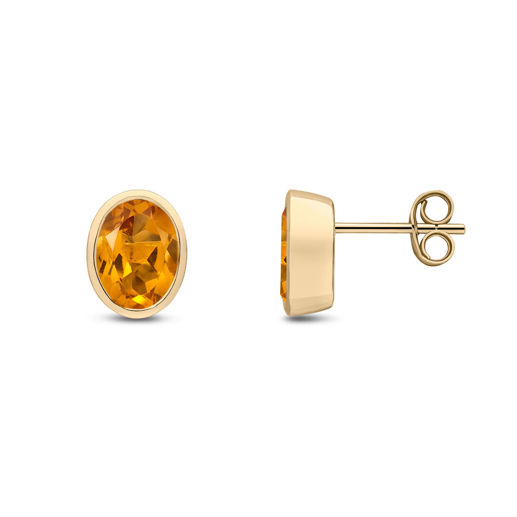 9CT Yellow Gold Oval Citrine Rubover Stud Earrings 8x6mm