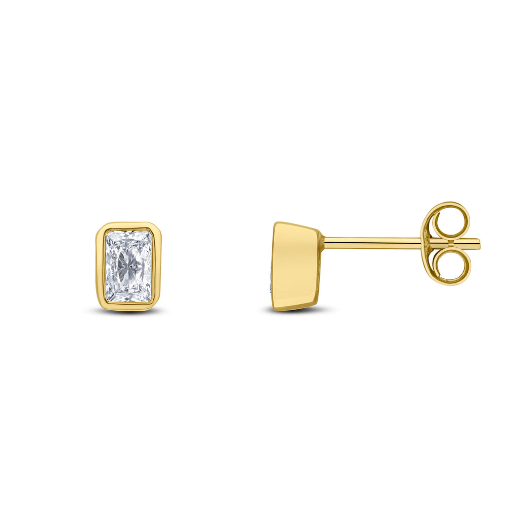 9CT Yellow Gold Octagonal Cubic Zirconia CZ Rubover Stud Earrings 5x3mm