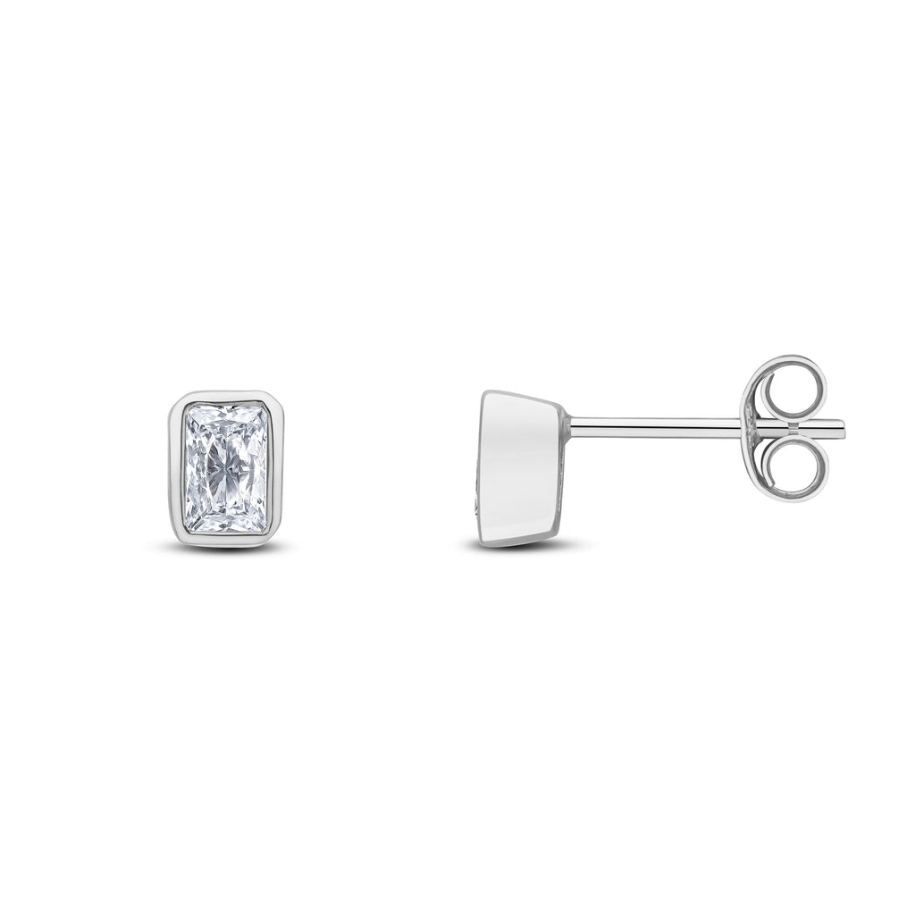 9CT White Gold Octagonal Emerald Rubover Stud Earrings 5x3mm
