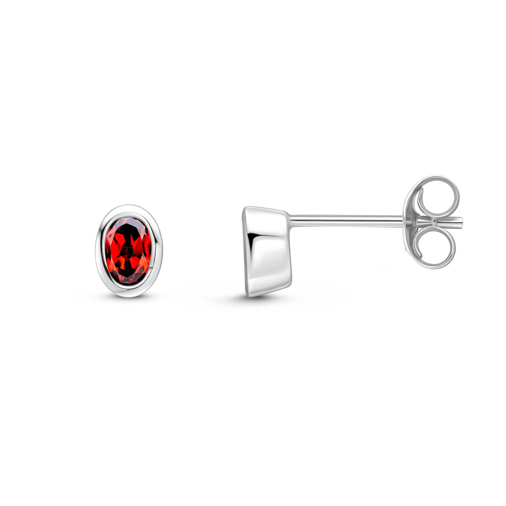 9CT White Gold Oval Garnet Rubover Stud Earrings 4x3mm