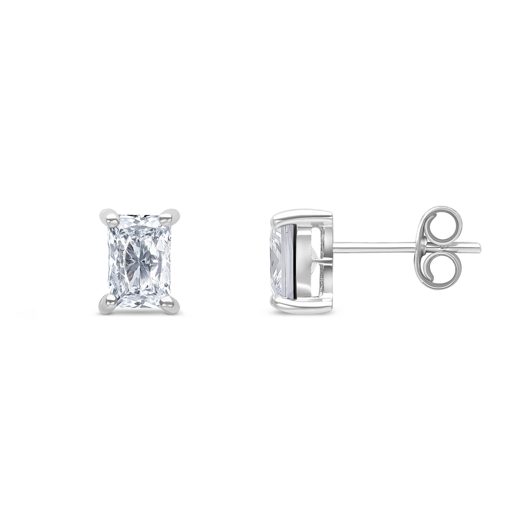9CT White Gold Octagonal Cubic Zirconia CZ Claw Stud Earrings 6x4mm
