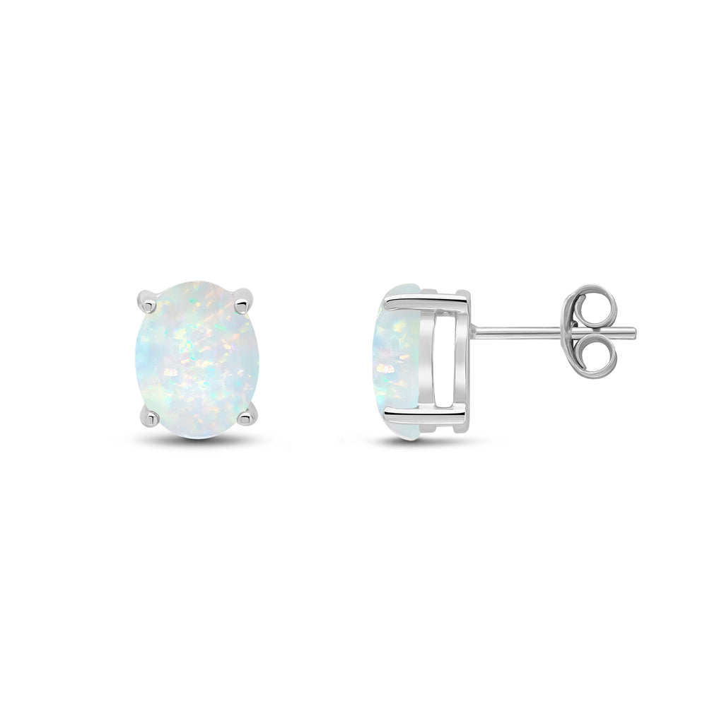 9CT White Gold Oval Opal Claw Stud Earrings 9x7mm