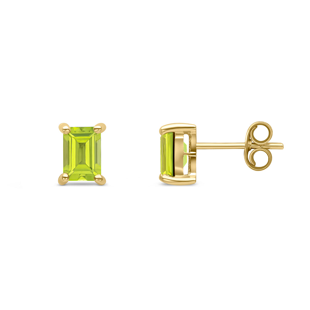 9CT Yellow Gold Octagonal Peridot Claw Stud Earrings 6x4mm
