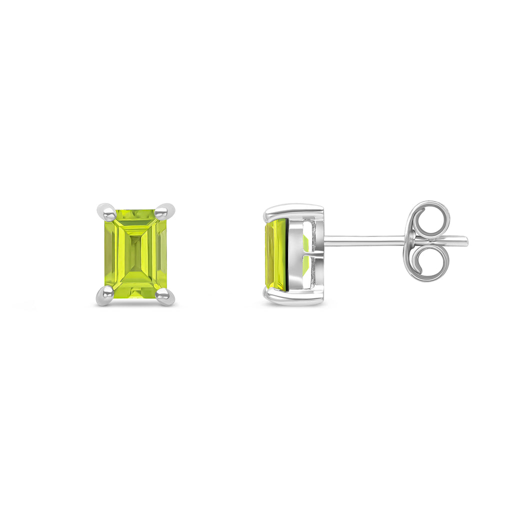 9CT White Gold Octagonal Peridot Claw Stud Earrings 6x4mm