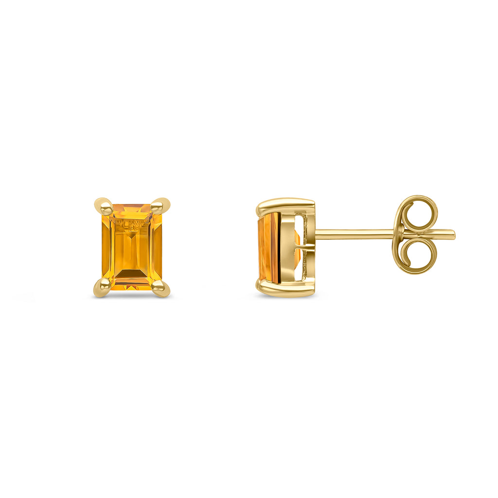9CT Yellow Gold Octagonal Citrine Claw Stud Earrings 6x4mm