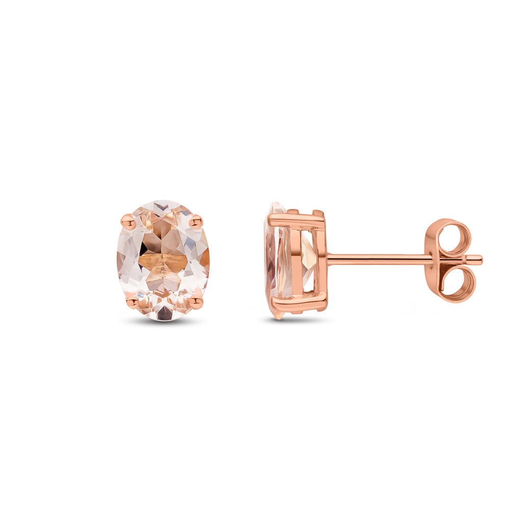 9CT Rose Gold Oval Morganite Claw Stud Earrings 8x6mm