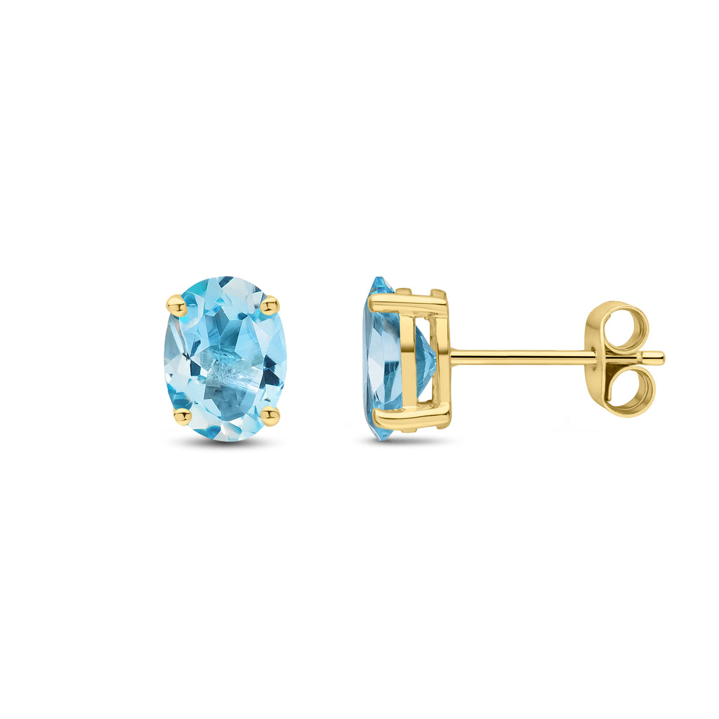 9CT Yellow Gold Oval Swiss Blue Topaz Claw Stud Earrings 8x6mm