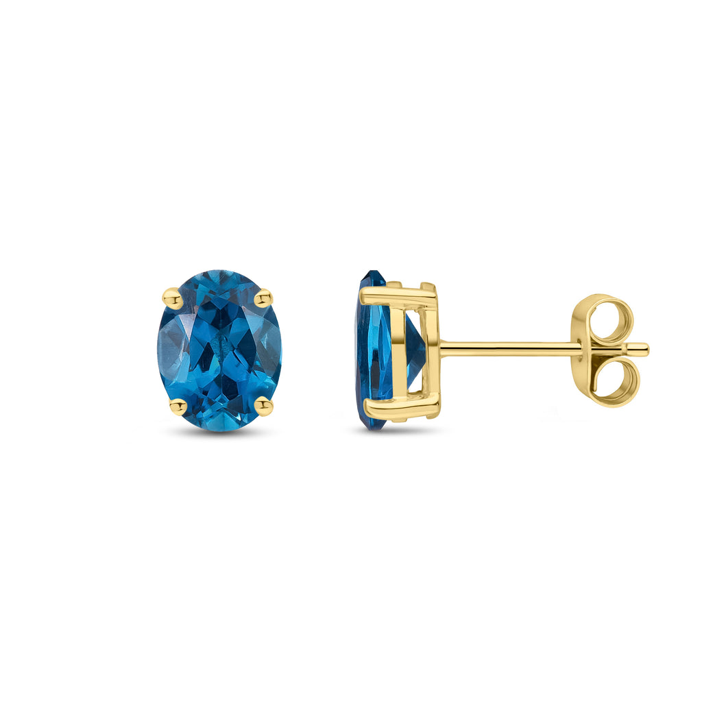 9CT Yellow Gold Oval London Blue Topaz Claw Stud Earrings 8x6mm