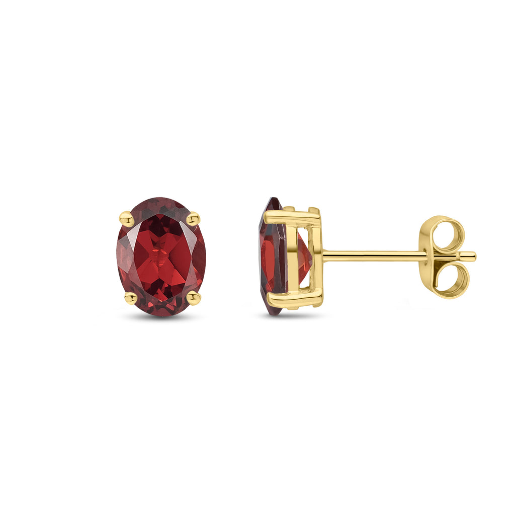 9CT Yellow Gold Oval Garnet Claw Stud Earrings 8x6mm