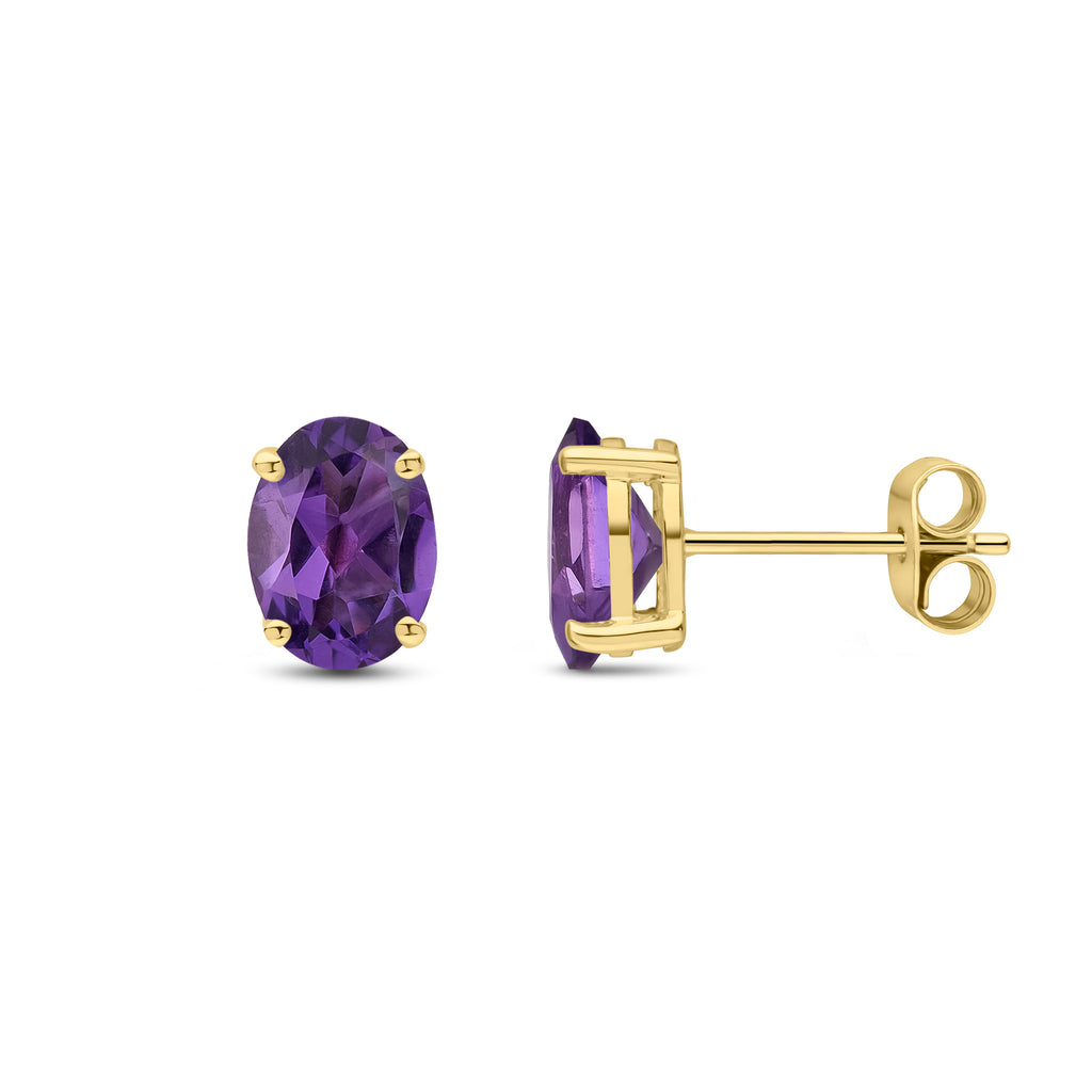 9CT Yellow Gold Oval Amethyst Claw Stud Earrings 8x6mm