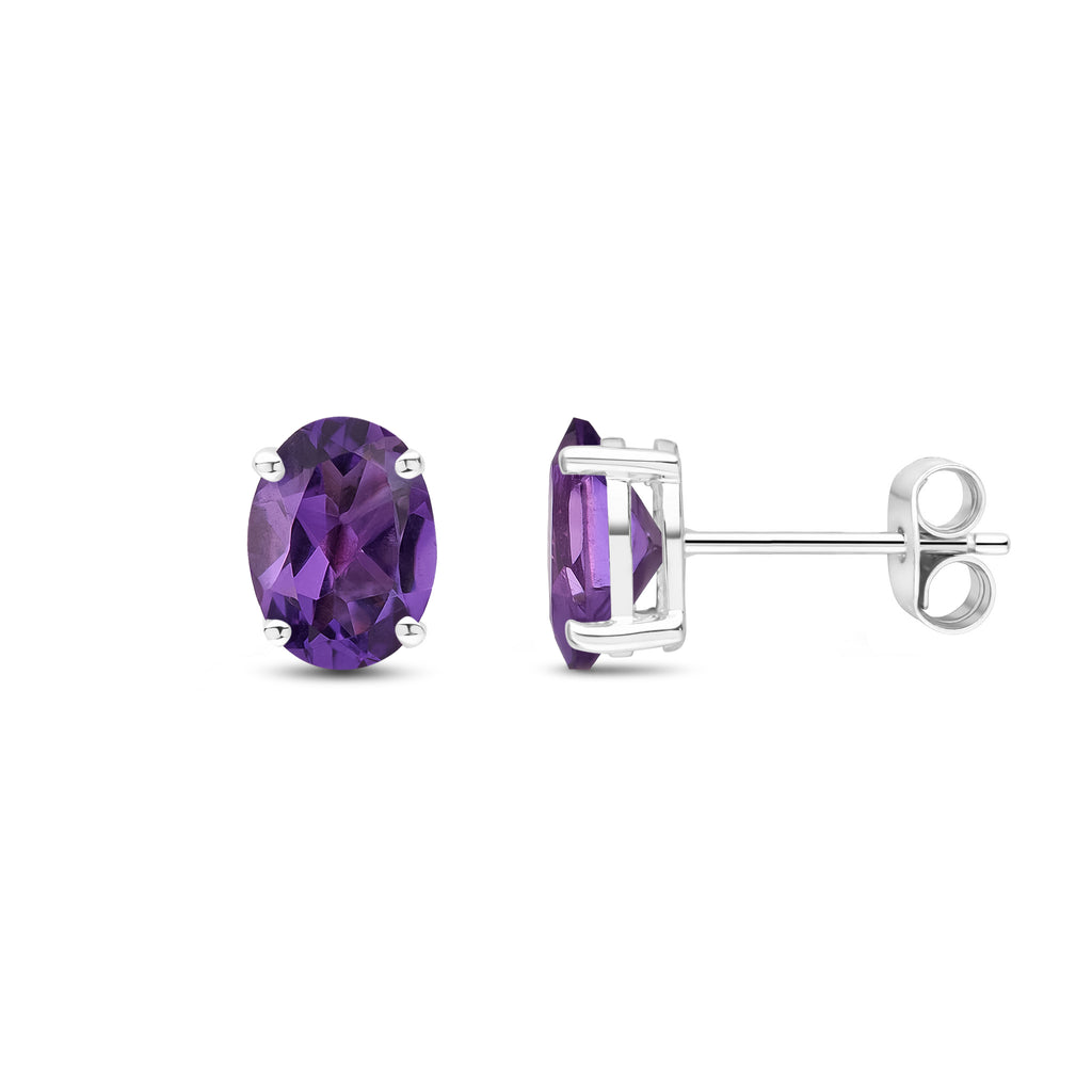 9CT White Gold Oval Amethyst Claw Stud Earrings 8x6mm