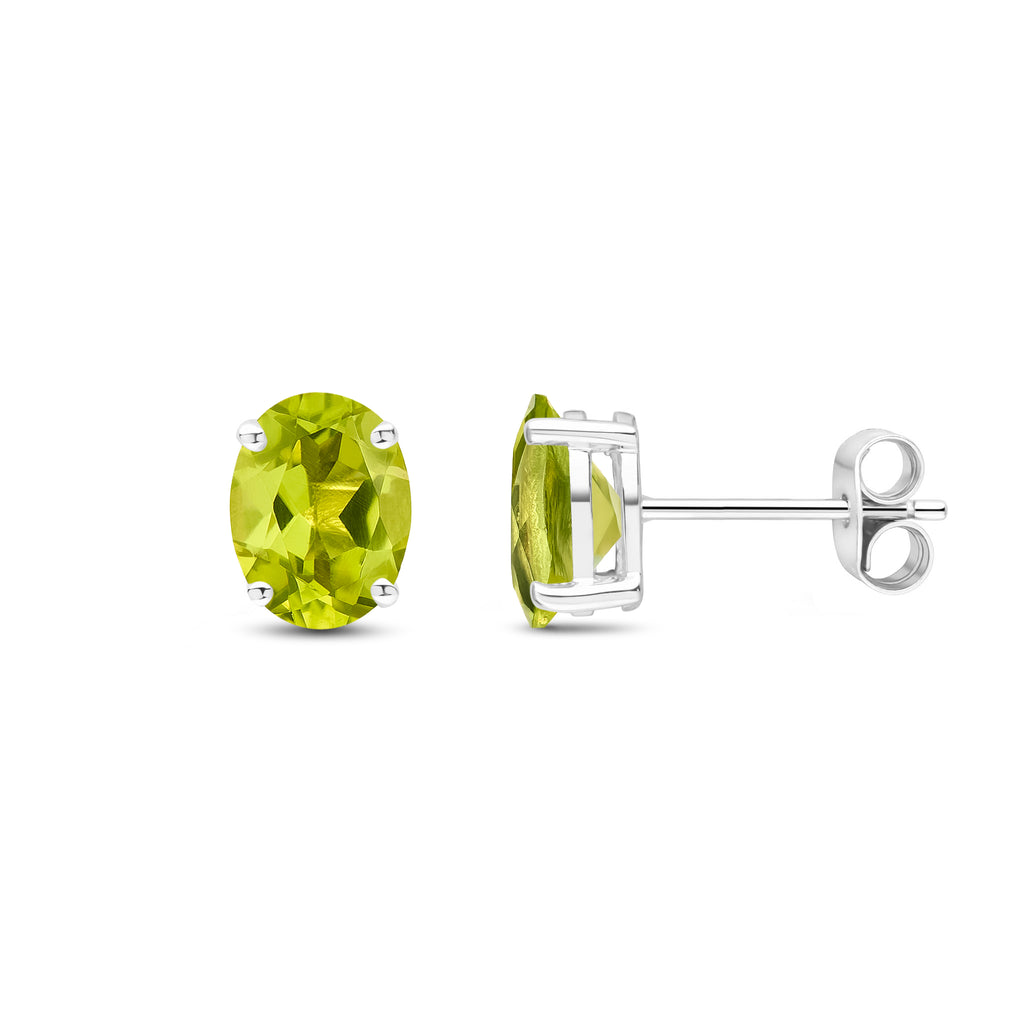 9CT White Gold Oval Peridot Claw Stud Earrings 8x6mm