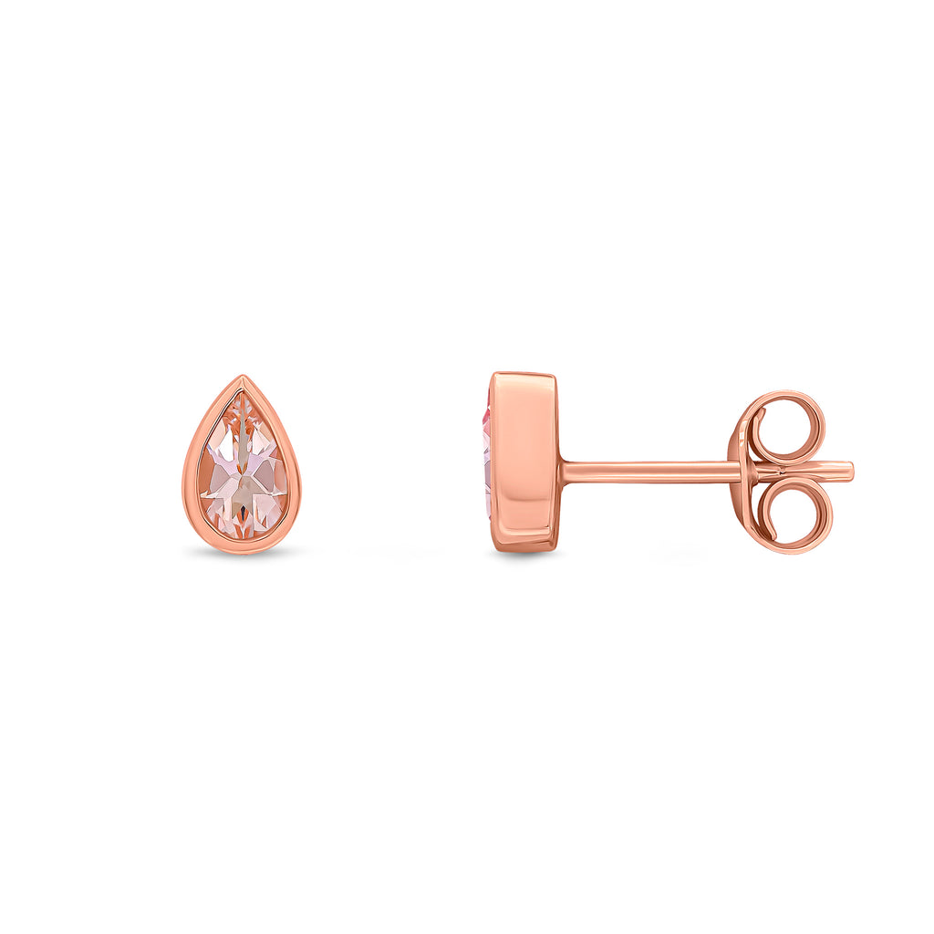 9CT Rose Gold Pear Shaped Morganite Rubover Stud Earrings 5x3mm