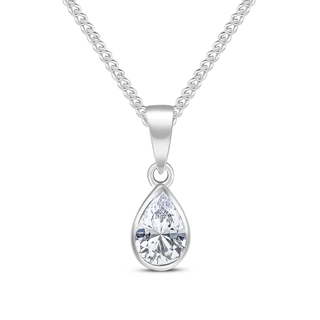 9CT White Gold Pear Shaped Cubic Zirconia CZ Rubover Pendant 7x5mm