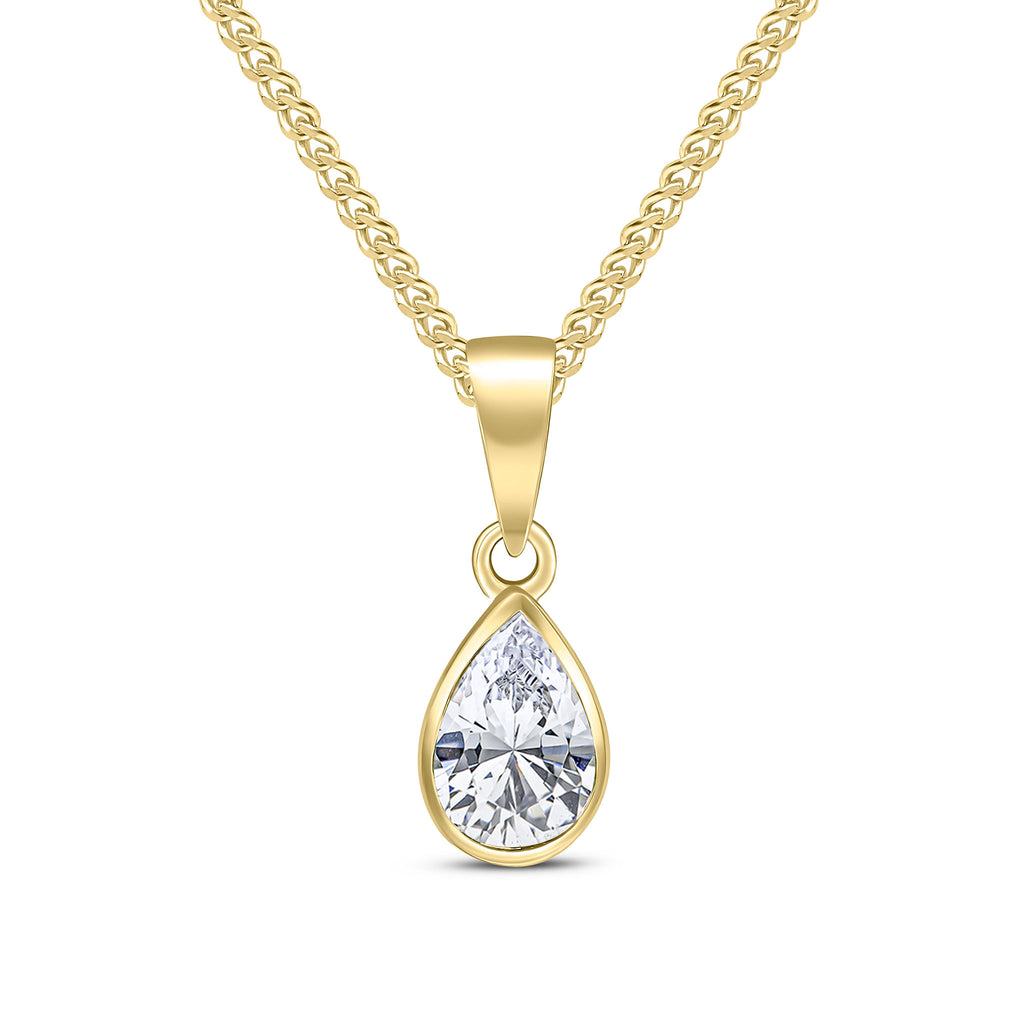 9CT Yellow Gold Pear Shaped Cubic Zirconia CZ Rubover Pendant 7x5mm