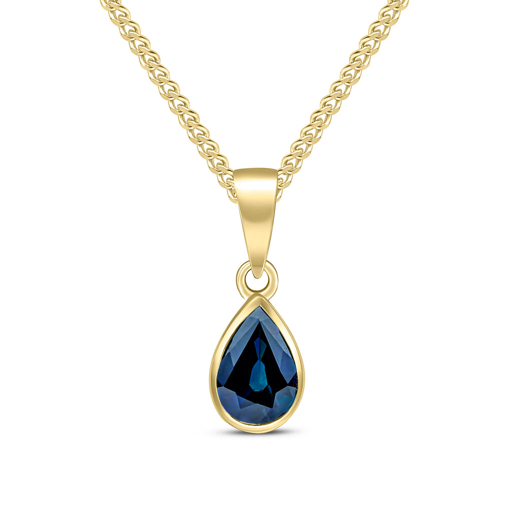 9CT Yellow Gold Pear Shaped Sapphire Rubover Pendant 7x5mm