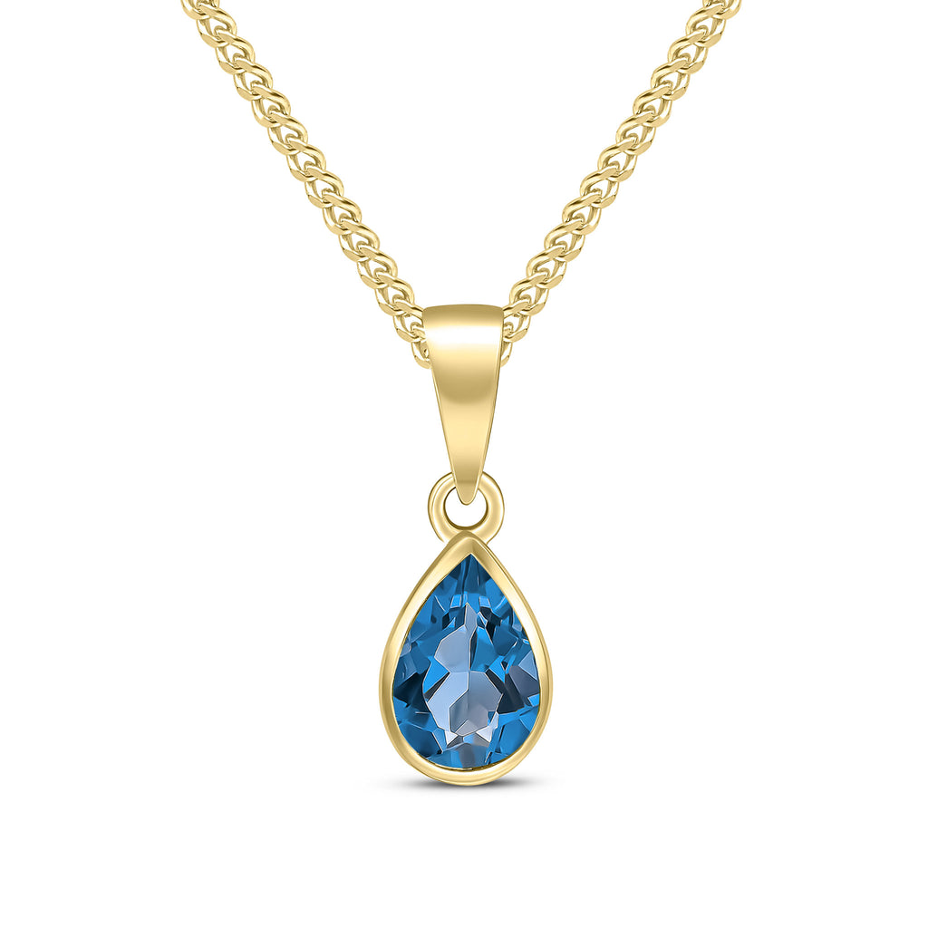 9CT Yellow Gold Pear Shaped London Blue Topaz Rubover Pendant 7x5mm
