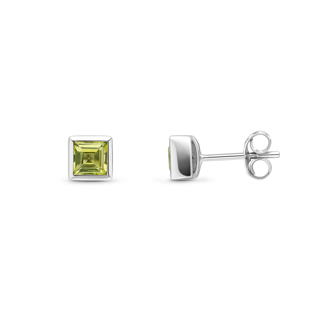 9CT White Gold Square Peridot Stud Rubover Earrings 3mm