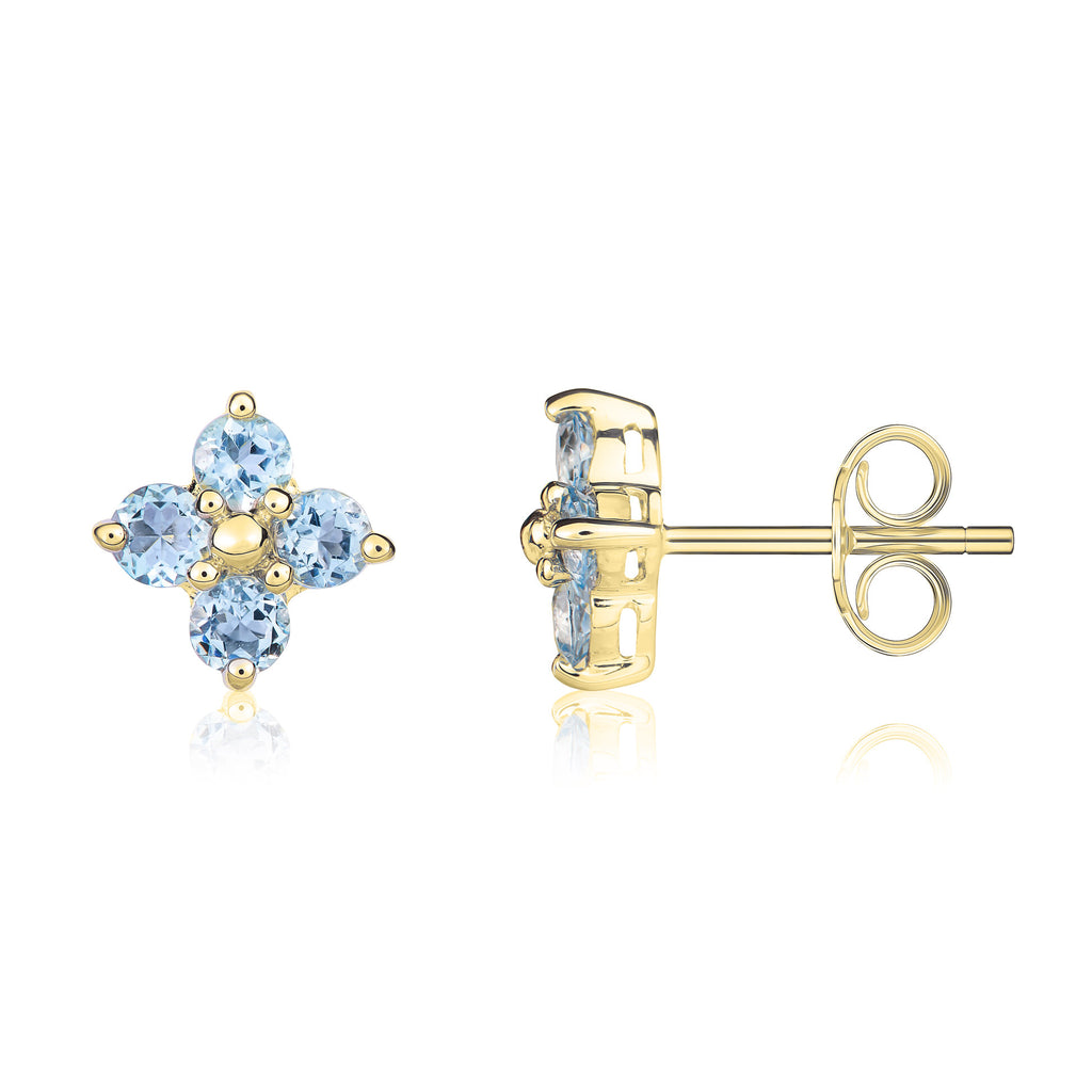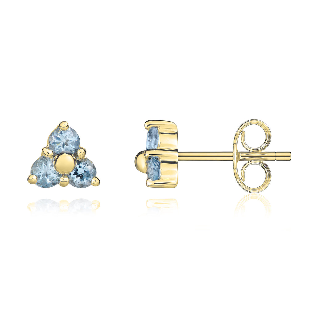 9CT Yellow Gold Round Aquamarine Trefoil Stud Earrings