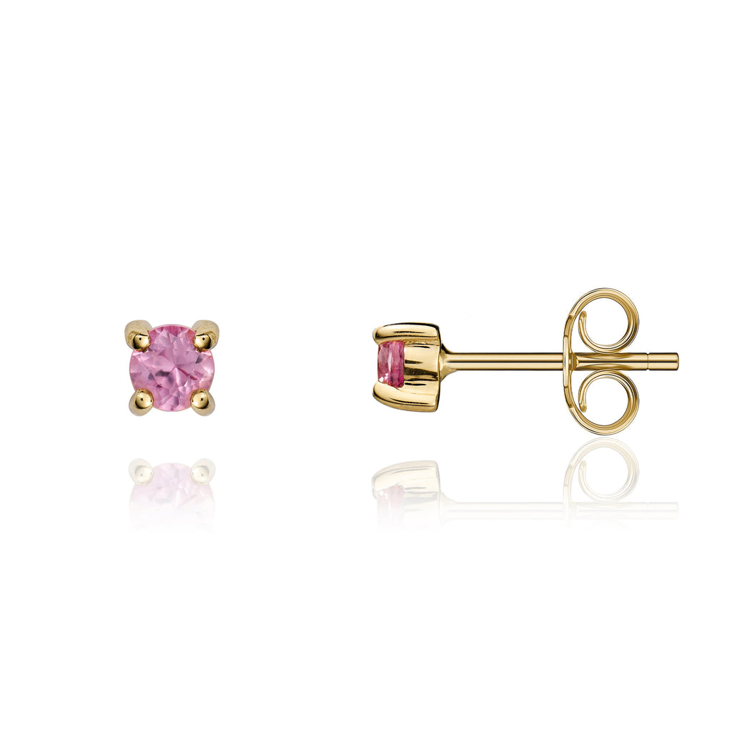 9CT Yellow Gold Round Pink Sapphire Claw Stud Earrings 3mm