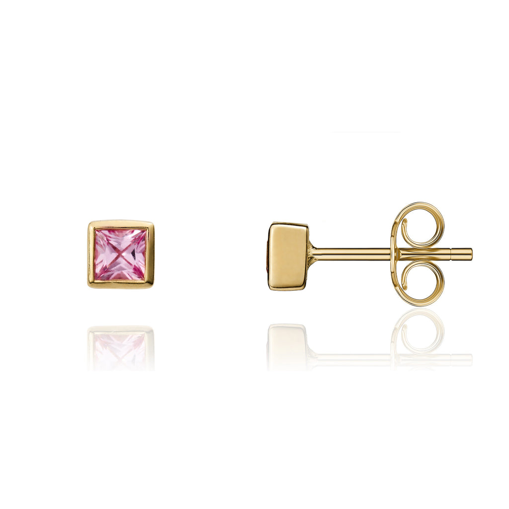 9CT Yellow Gold Square Pink Sapphire Rubover Stud Earrings 3mm