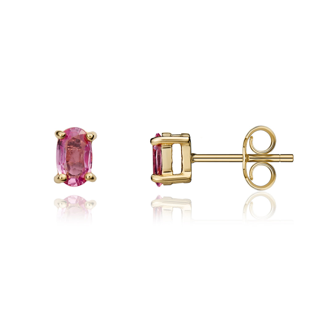 9CT Yellow Gold Oval Pink Sapphire Rubover Stud Earrings 4x3mm