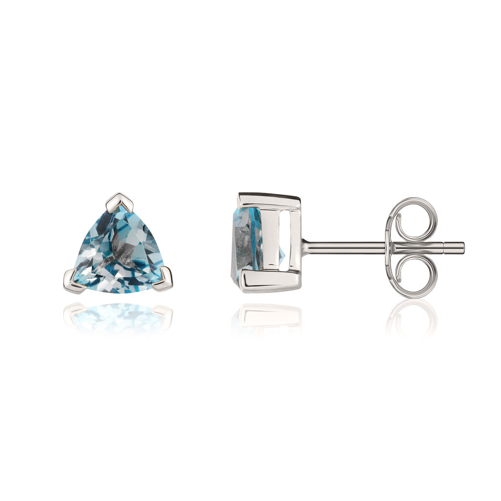 9CT White Gold Triangle Swiss Blue Topaz Claw Stud Earrings 6mm