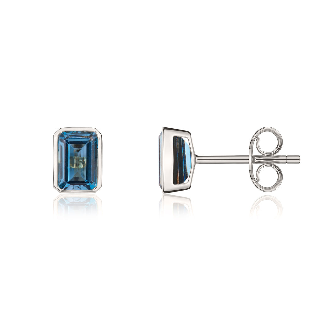 9CT White Gold Octagonal London Blue Topaz Rubover Stud Earrings 7x5mm