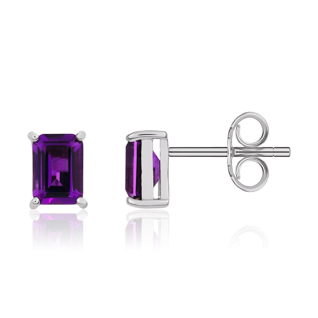 9CT White Gold Octagonal Amethyst Claw Stud Earrings 7x5mm