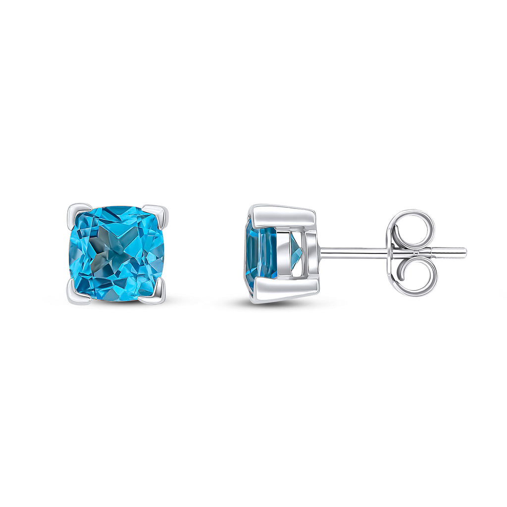 9CT White Gold Cushion Swiss Blue Topaz Claw Stud Earrings 6mm