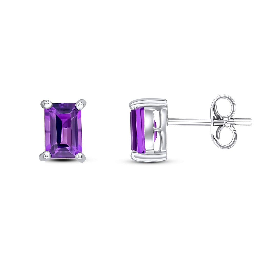 9CT White Gold Octagonal Amethyst Claw Stud Earrings 6x4mm