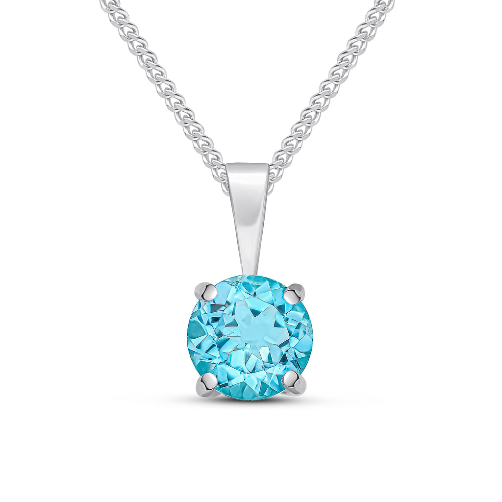 9CT White Gold Round Swiss Blue Topaz Claw Pendant 6mm