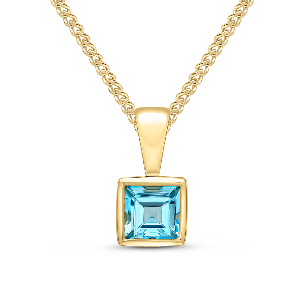 9CT Yellow Gold Square Swiss Blue Topaz Rubover Pendant 4mm