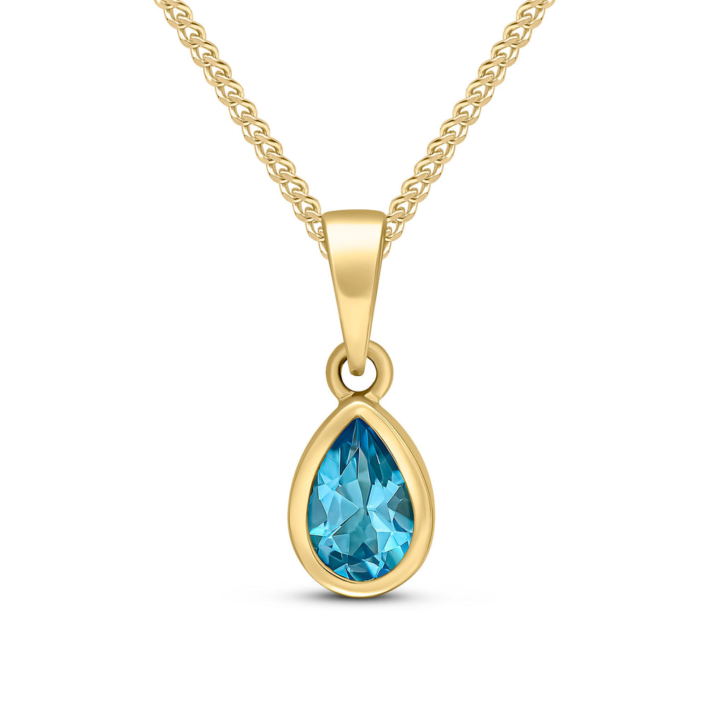 9CT Yellow Gold Pear Shaped Swiss Blue Topaz Rubover Pendant 6x4mm
