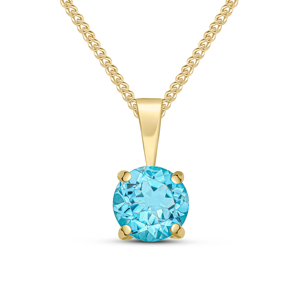 9CT Yellow Gold Round Swiss Blue Topaz Claw Pendant 6mm