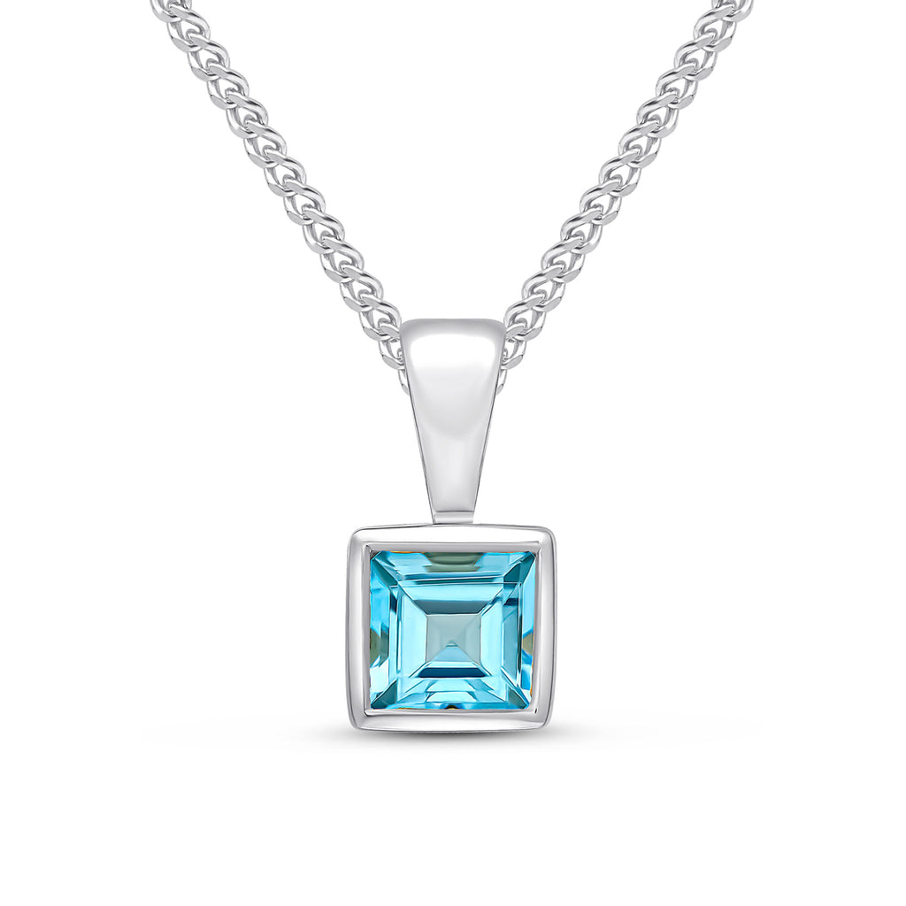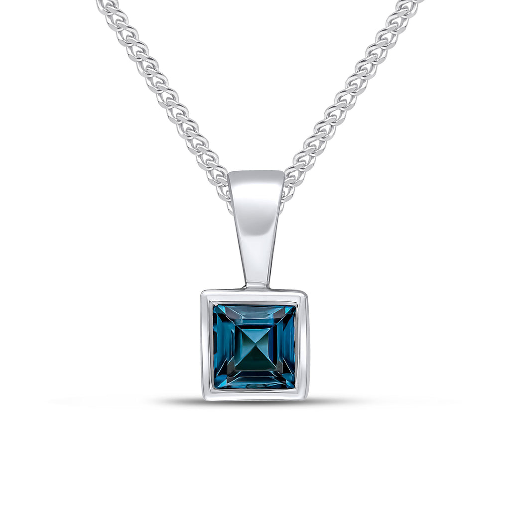 9CT White Gold Square London Blue Topaz Rubover Pendant 4mm