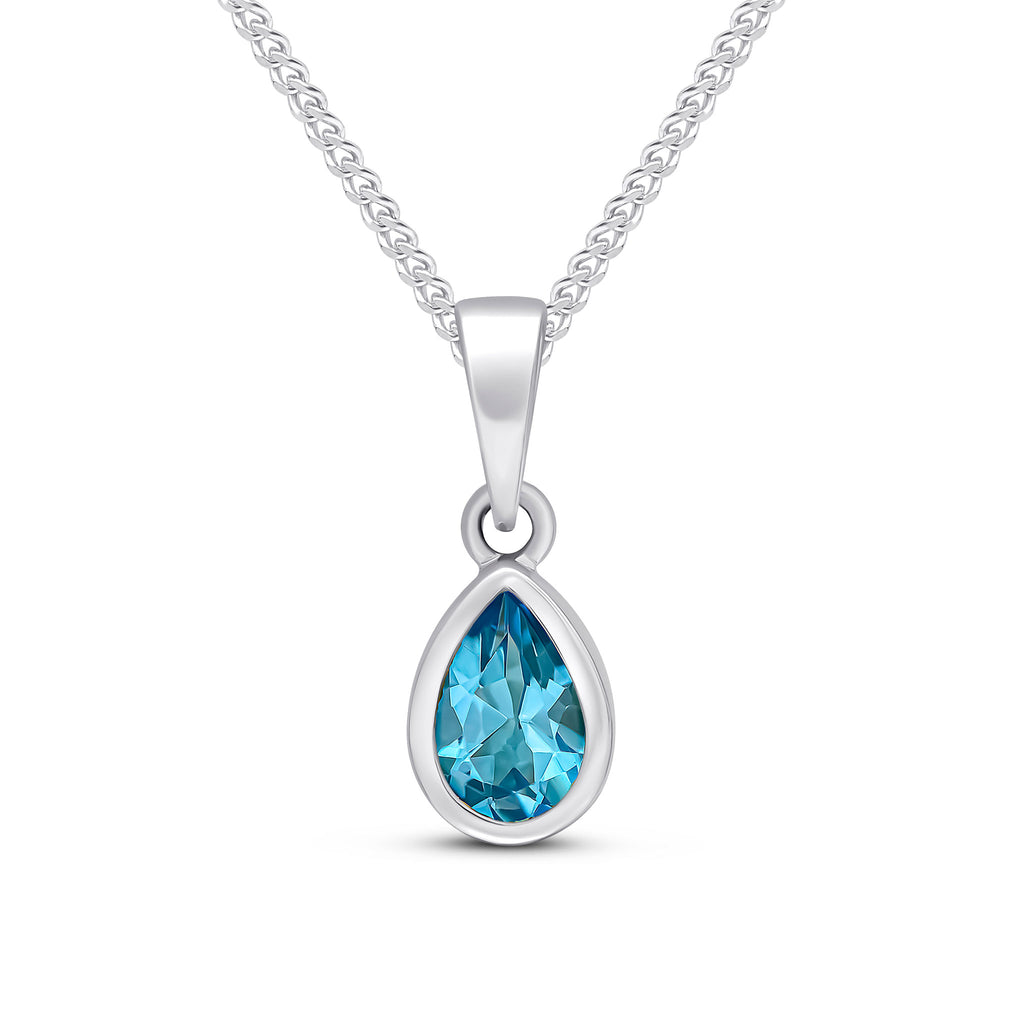 9CT White Gold Pear Shaped Swiss Blue Topaz Rubover Pendant 6x4mm