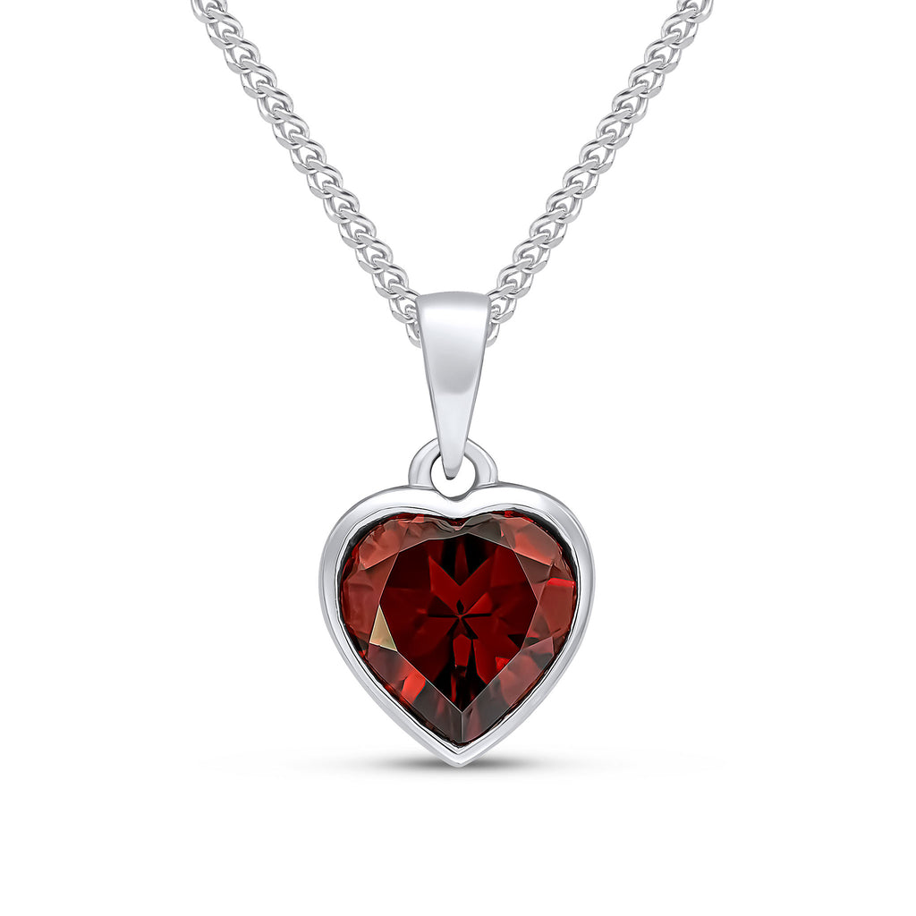 9CT White Gold Heart Shaped Garnet Rubover Pendant 8mm
