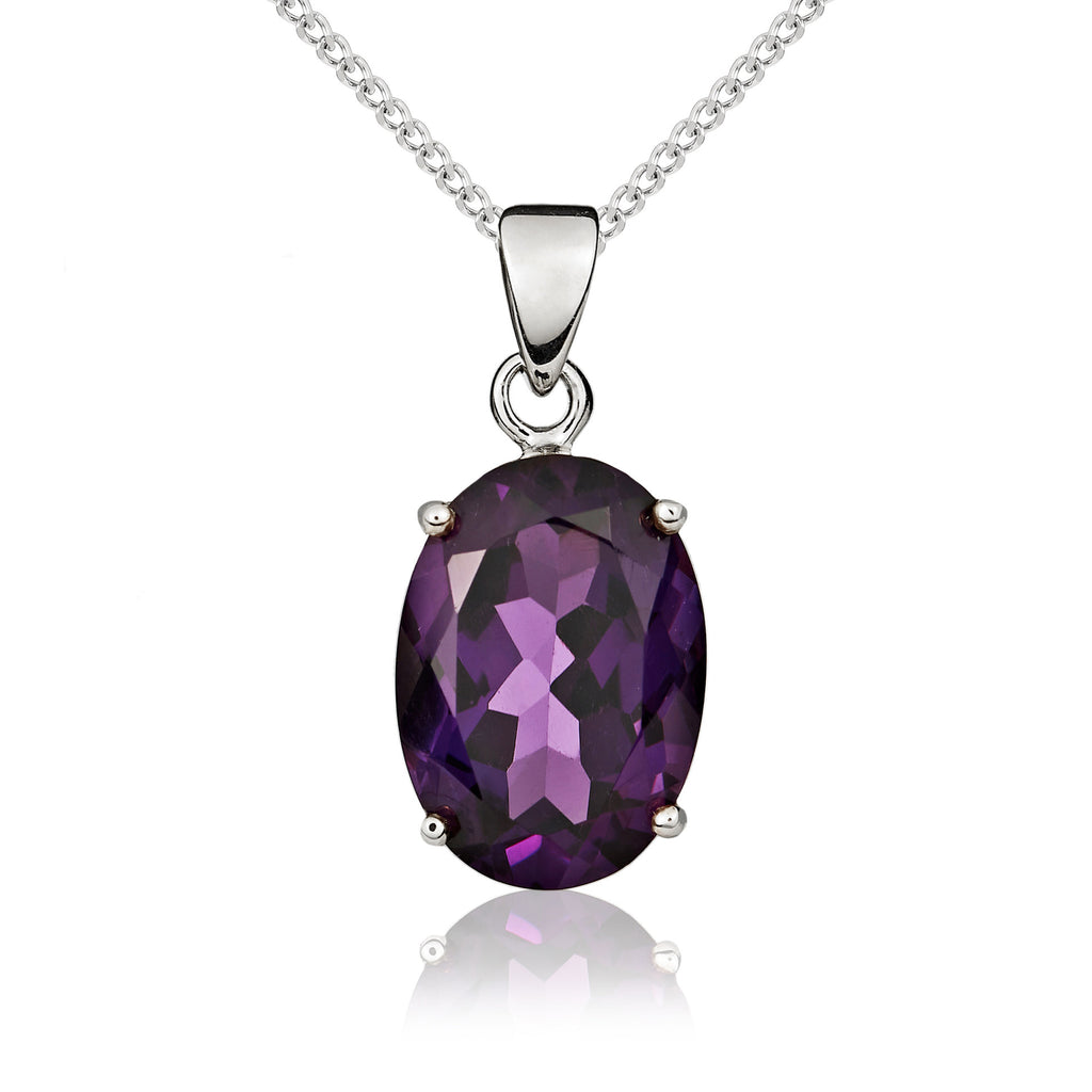 9CT White Gold Oval Amethyst Claw Pendant 14x10mm