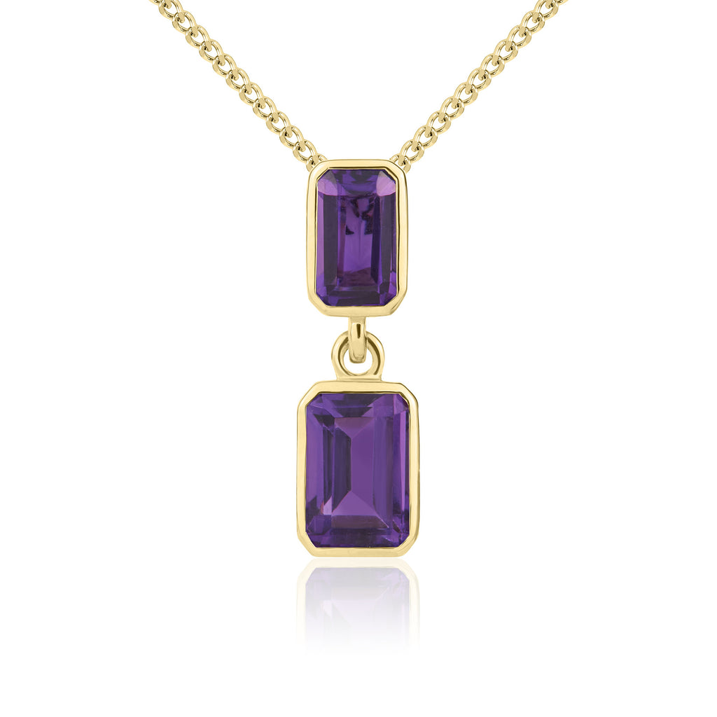 9CT Yellow Gold Octagonal Amethyst Rubover Double Drop Pendant