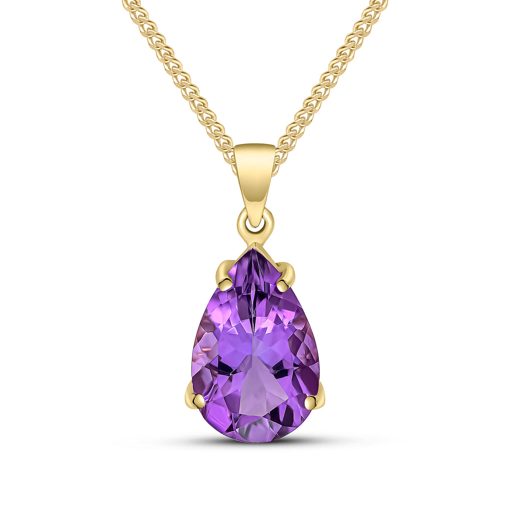 9CT Yellow Gold Pear Shaped Amethyst Claw Pendant 14x9mm
