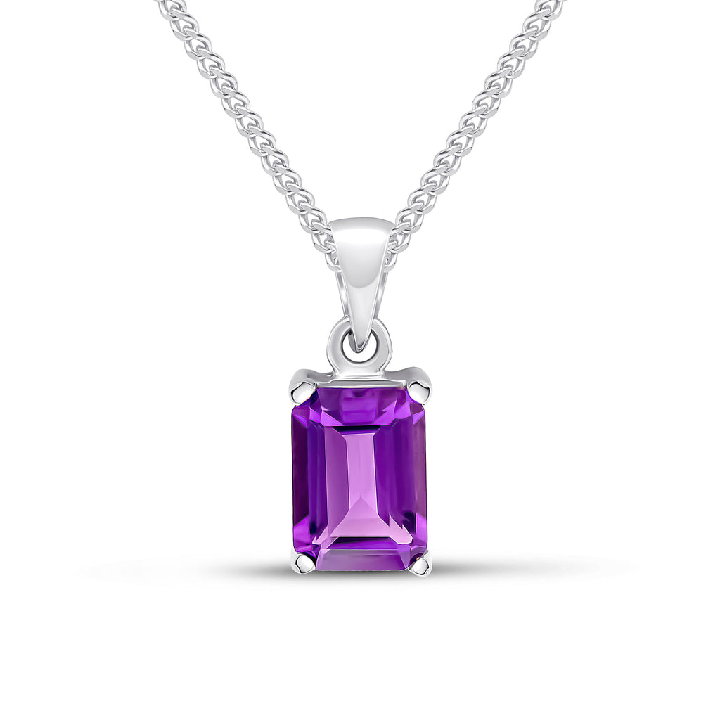 9CT White Gold Octagonal Amethyst Claw Pendant 7x5mm