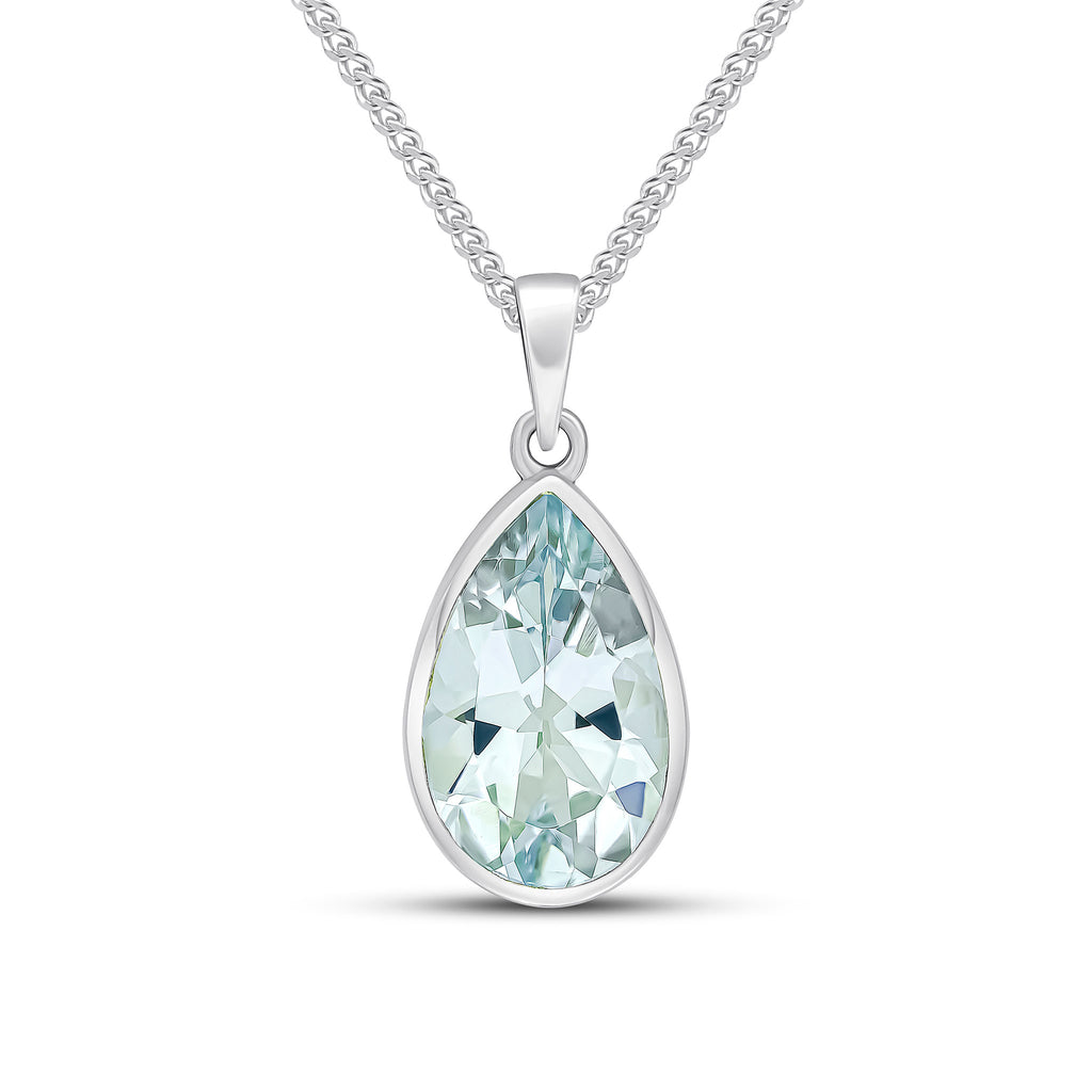 9CT White Gold Pear Shaped Aquamarine Rubover Pendant 14x9mm