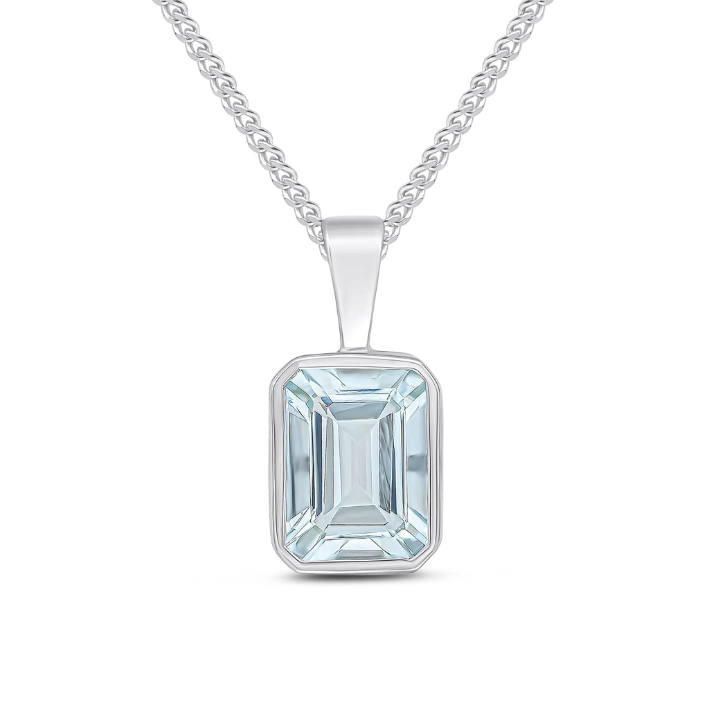 9CT White Gold Octagonal Aquamarine Rubover Pendant 8x6mm